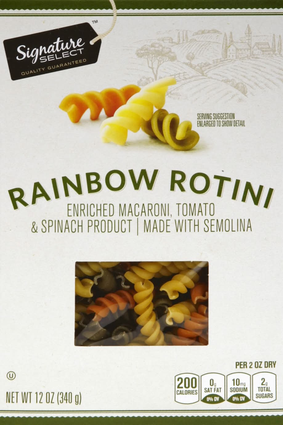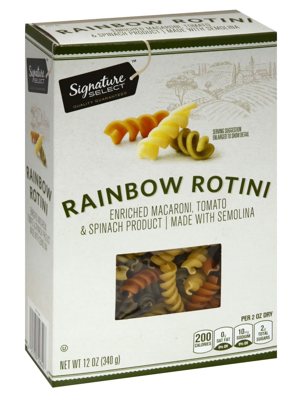 Bring 3 quarts of water to a rapid boil. if desired, add 2 tsp of salt. gradually add 12 oz of rainbow rotini to boiling water. stir gently and return to a rapid boil. cook uncovered, stirring occasionally for 10-12 minutes, or until desired degree of tenderness is reached. drain. for casseroles and pour-over sauces, rinse in hot water. for salads, rinse in cold water. store in a cool dry place.