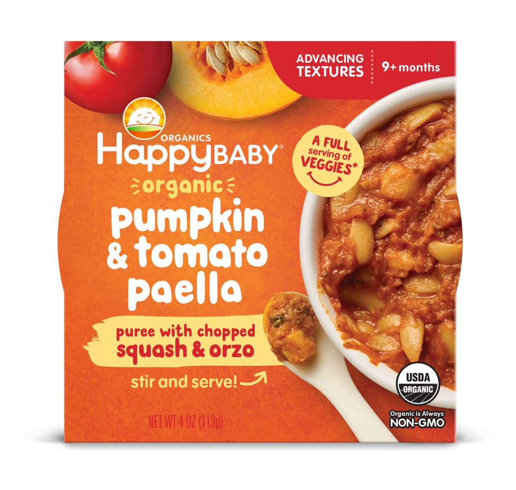 Happy Baby Advancing Textures delivers vibrant flavors in a delicious paella-inspired dish with bits of chopped squash and orzo in a pumpkin & tomato puree. Delivering 1 full serving (¼ cup) of veggies, it’s a mealtime solution you can serve at room temperature, or warm it up right in the bowl! All Happy Baby products are always certified USDA organic, made with ingredients that are non-GMO and grown without the use of toxic persistent pesticides, in packaging made without BPA, BPS, or phthalates. Plus, Happy Baby Advancing Texture Bowls were developed with infant feeding specialists to introduce new textures that help prepare baby for table food.