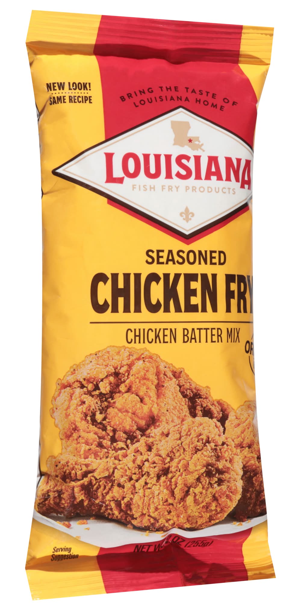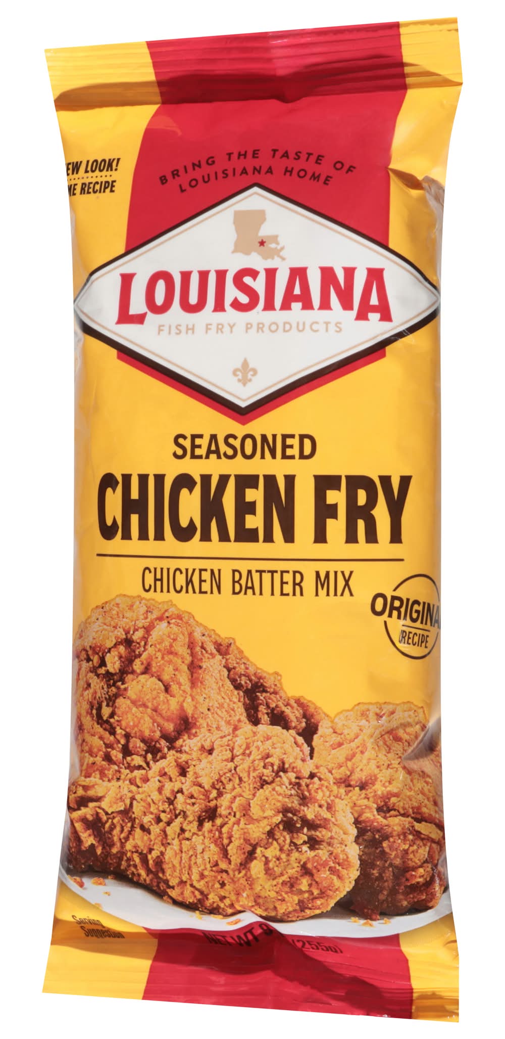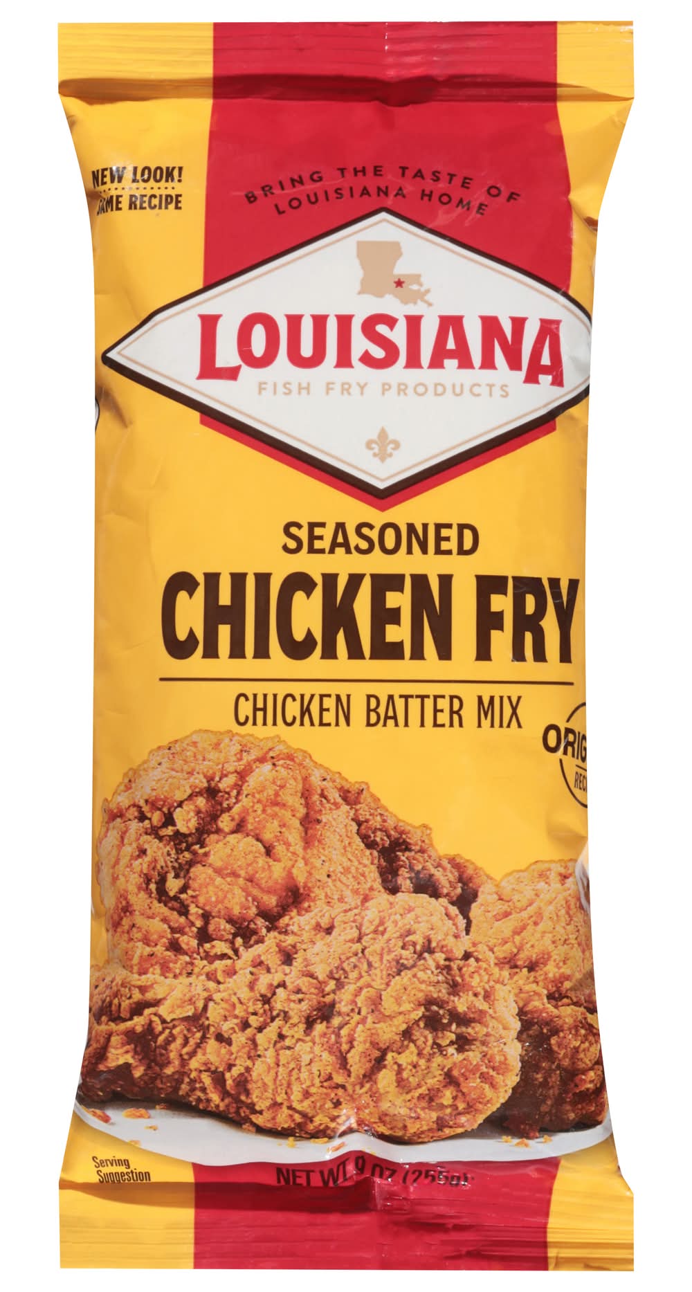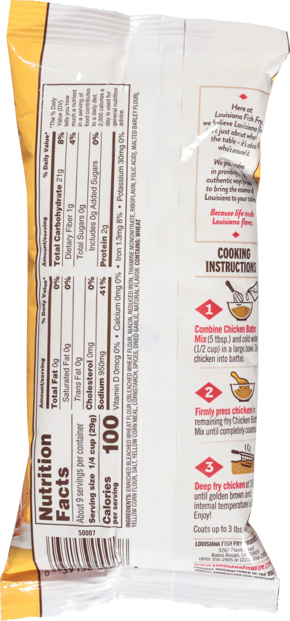 Cooking directions: 3 easy steps: 1. mix 5 tbsp of la chicken fry batter mix in 1/2 cup of ice cold water. dip chicken into batter. 2. coat chicken in remaining dry la chicken fry batter mix. 3. deep fry chicken at 325 degrees f until internal temperature is 165 degrees f and until golden brown. 9 oz. of la chicken fry batter mix coats approximately 3-4 lbs. of chicken.
