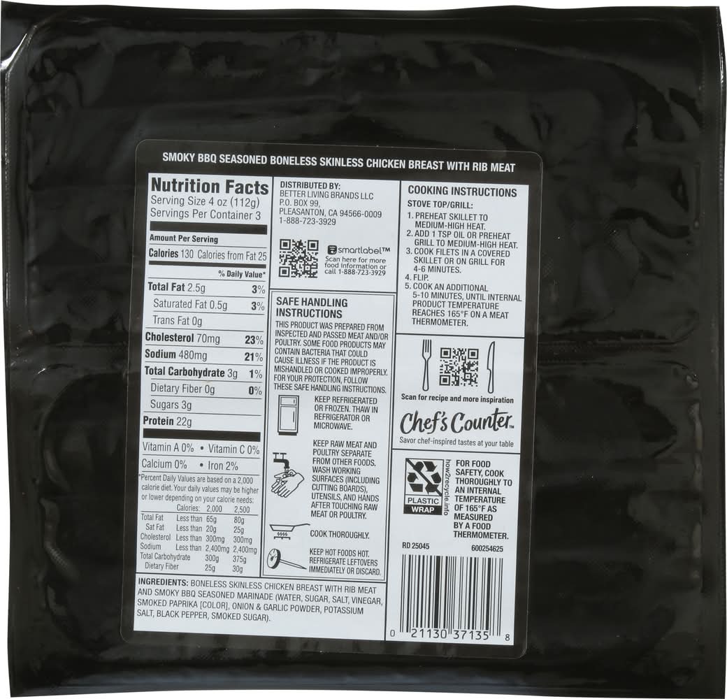 Chef's Counter Boneless Skinless Chicken Breast With Rib Meat, Smoky Bbq Seasoned (12 oz)