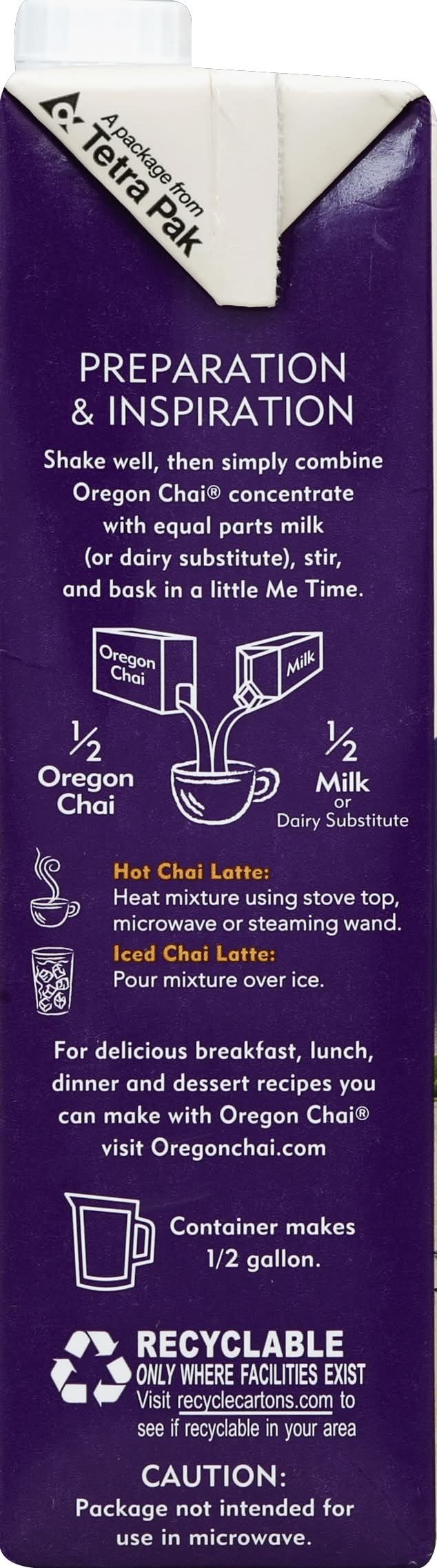 Shake well. refrigerate once open. use within four weeks. preparation & inspiration: shake well, then simply combine oregon chai concentrate with equal parts milk (or dairy substitute), stir, and bask in a little me time. 1/2 oregon chai; 1/2 milk or dairy substitute. hot chai latte: heat mixture using stove top, microwave or steaming wand. iced chai latte: pour mixture over ice.