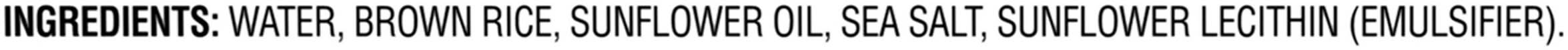 Ingredients: "WATER, BROWN RICE, SUNFLOWER OIL, SEA SALT, SUNFLOWER LECITHIN (EMULSIFIER)." Contains: NONE AS DEFINED BY FDA FALCPA