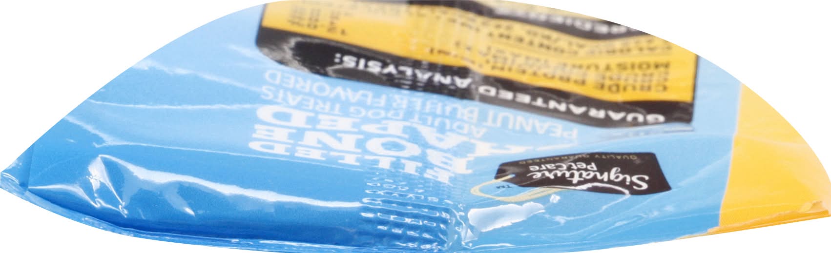 Directions for use: Feeding Directions: Not for human consumption. For adult dogs. Not intended for puppies. Not intended for dogs under 5 lbs. 5-15 lbs feed no more than 1 piece per week. 15-30 lbs and up feed no more than 2 pieces per week. 30-60 lbs and up feed no more than 3 pieces per week. Feed as a treat. Signature Pet Care filled dog bone shaped dog treats are intended for intermittent or supplemental feeding only. Be sure to provide your pet with plenty of fresh, cleaning drinking water daily. Store in a cool dry place, re-seal bag after opening. Storage recommendation: Store in a cool dry place, re-seal bag after opening.