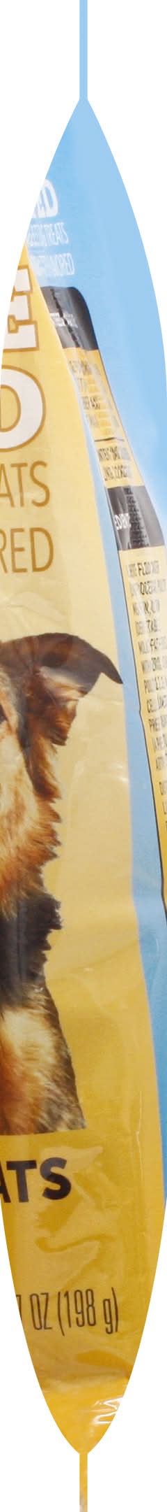 Ingredients: Wheat Flour, Rice Flour, Water (Sufficient for Processing), Poultry Meal, Wheat Gluten, Glycerin (Derived from Vegetable Oil), Molasses, Poultry Fat (Preserved with Mixed Tocopherols), Natural Poultry Flavor, Salt, Gelatin, Cellulose, Potassium Sorbate (a Preservative), Calcium Propionate (a Preservative), Natural Artificial Peanut Butter Flavor. Contains: 'Contains Wheat', 'Contains Gluten', 'Contains Peanuts'