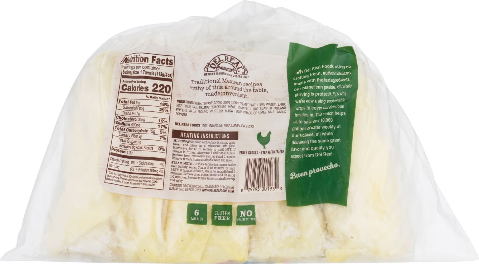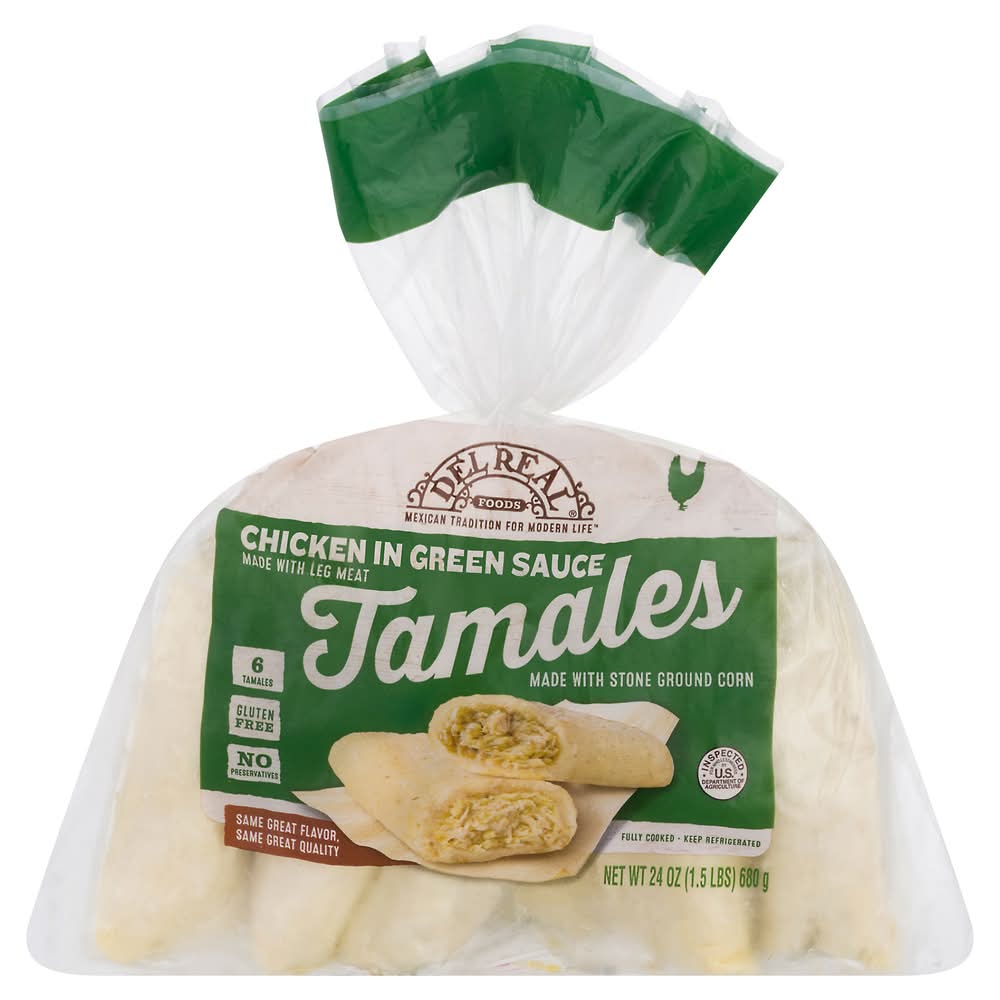 Del Real Foods Green Sauce Tamales Wraps, Chicken (24 oz, 6 ct)