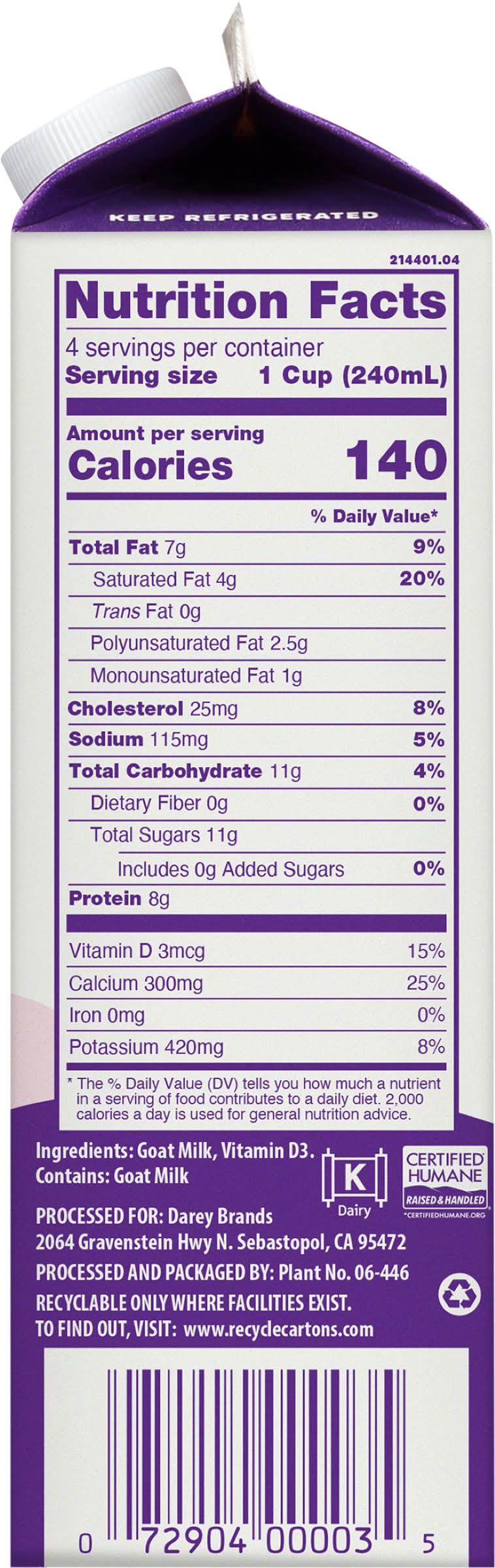 Ingredients: Goat Milk, Vitamin D3 Contains: Milk