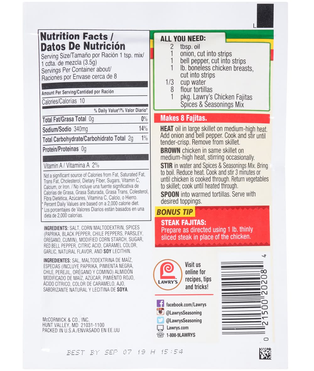 Lawry's Chicken Fajitas Spices & Seasoning Mix (1 oz)