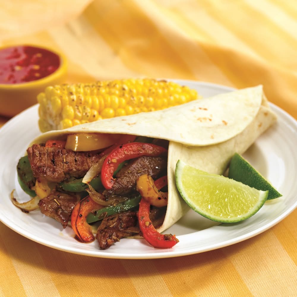 Stir fry: all you need: 2 tbsp. oil, 1 large onion cut into strips, 1 bell pepper cut into strips, 1 lb. boneless, skinless chicken breast halves cut into strips, 1/3 cup water, 8 flour tortillas, 1 pkg. lawry's chicken fajitas spices & seasonings mix. makes 8 fajitas. heat oil in large skillet on medium-high heat. add onion and bell pepper. cook and stir until tender-crisp. remove from skillet. brown chicken in same skillet on medium-high heat, stirring occasionally. stir in water and spices & seasoning mix. bring to boil. reduce heat. cook and stir 3 minutes or until chicken is cooked through. return vegetables to skillet; cook until heated through. spoon into warmed tortillas. serve with desired toppings. bonus tip: steak fajitas: prepare as directed using 1 lb. thinly sliced steak in place of the chicken.