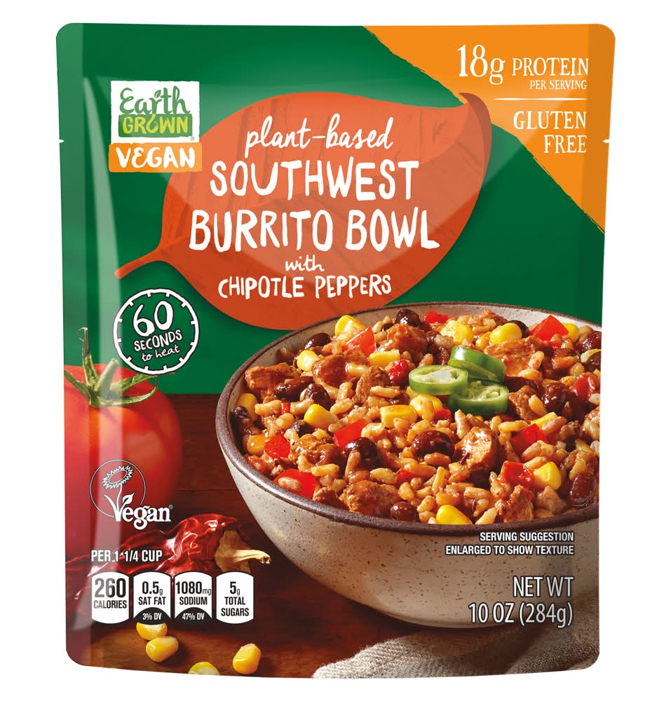 Earth Grown Plant Based Southwest Burrito Bowl With Chipotle Peppers (10 oz)