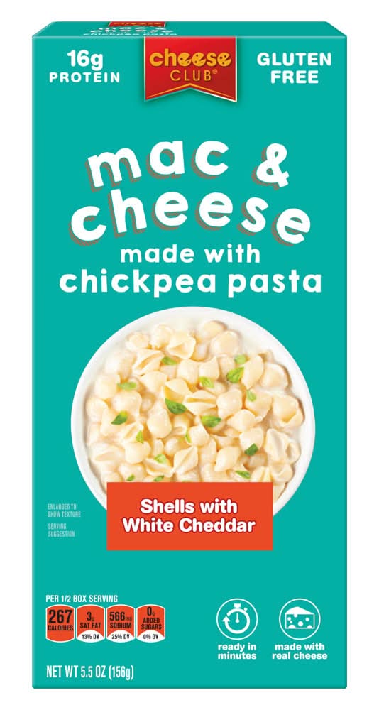 Cheese Club Mac & Cheese Chickpea Pasta Shells, White Cheddar (5.5 oz)