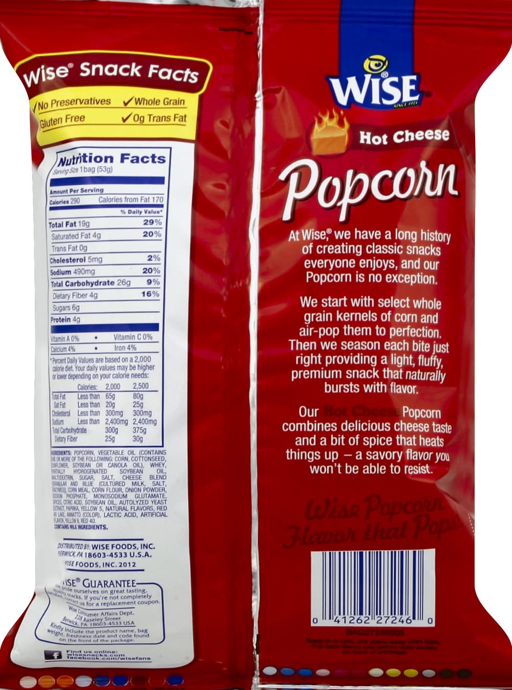 Wise Popcorn, Hot Cheese - Whole Grain (1.88 oz)