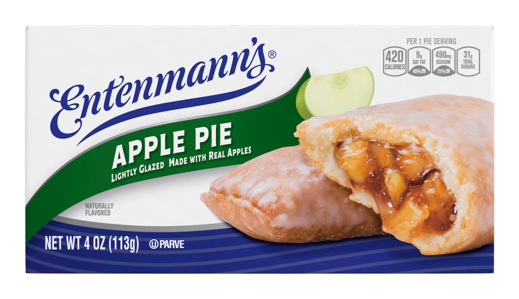 Enjoy Entenmann’s Apple Snack Pie sweet flakey pie crust with scrumptious tangy apple cinnamon filling all in a single serving size. Bimbo Bakeries USA, Inc., Horsham,PA,19044