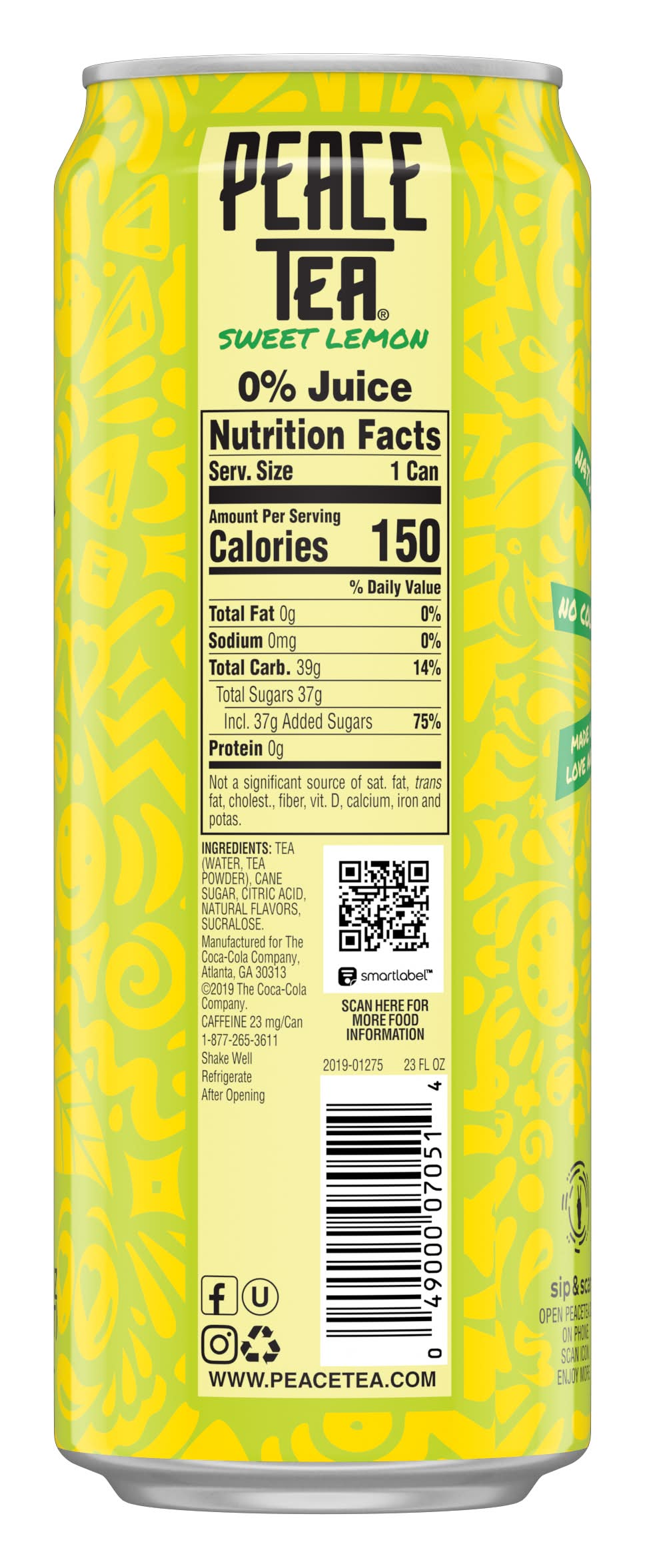 Peace Tea Sweet Lemon Can, 23 fl oz • The Coca-Cola Company, Atlanta,GA,30313 • Packaging: Reusable