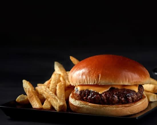 Cheeseburger served with fries and a bottled water. Substitute drink options also available.