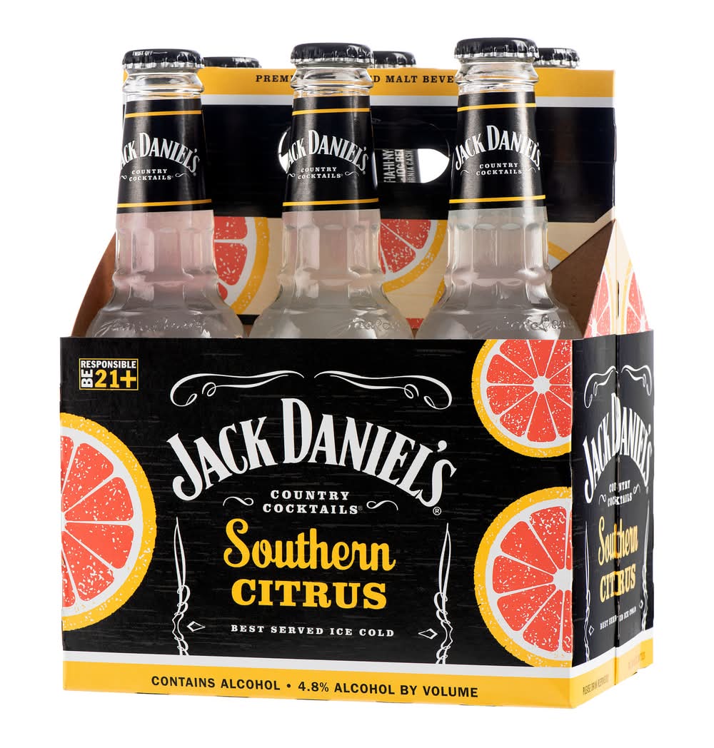 Jack Daniel's Country Cocktails Southern Citrus, 6 Pack, 10 oz Bottles, 4.8% ABV • Brand: Jack daniel's country cocktails • Category: Malt liquor • Pack size: 6 • Alcohol by volume: 4.8% • Medium light bodied • Suggested glassware: pint glass