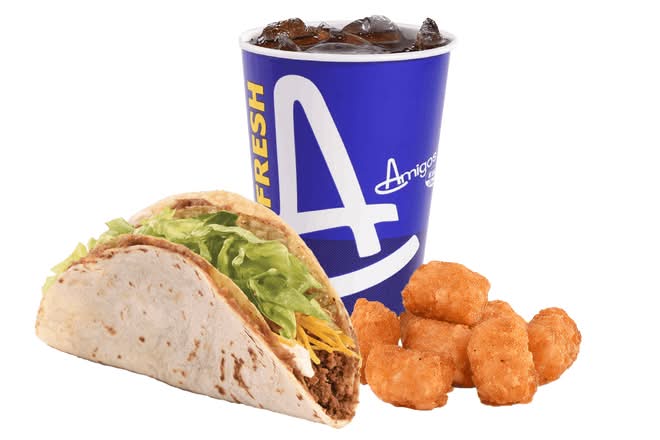 A Taco-Rito with Jr. Mexi Fries and a Small Soft Drink.