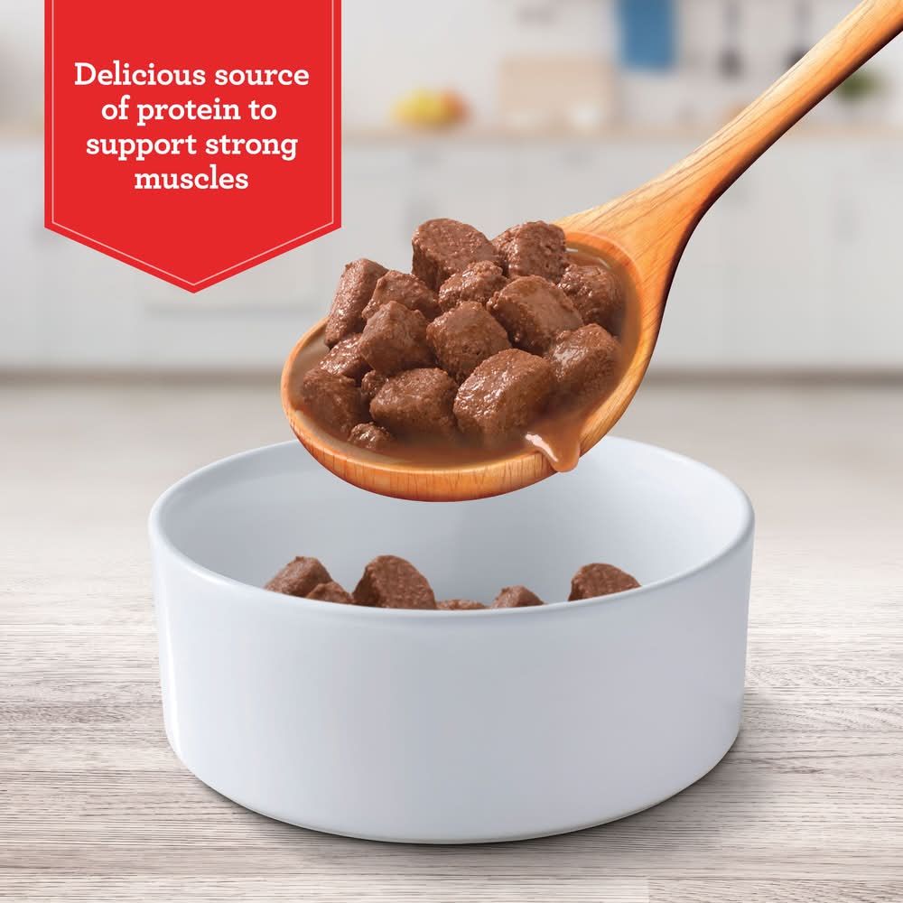 Chunks in Gravy With T-Bone Flavor Chunks Wet Dog Food • BIG HEART PET BRANDS, Orrville, OH, 44667, Ph: 800-252-7022. • Packaging: Reusable