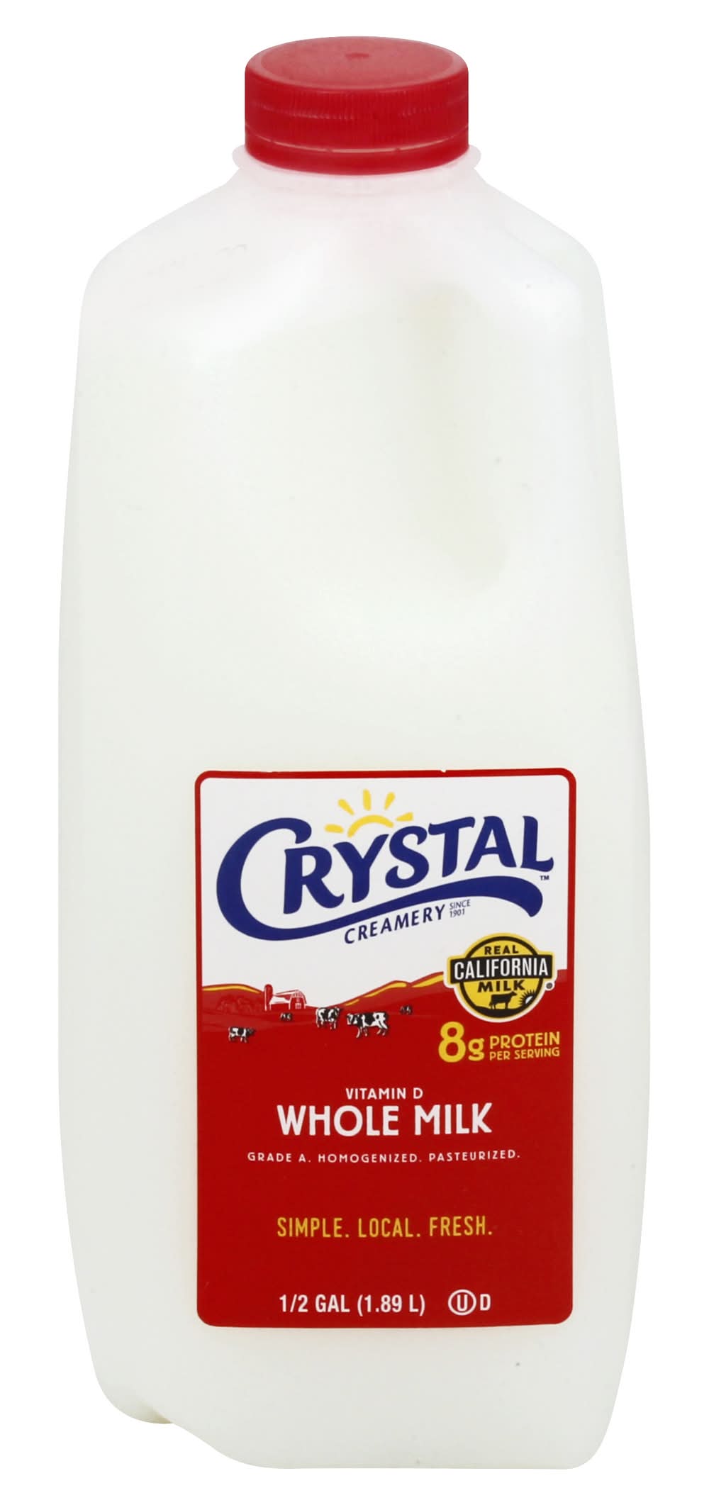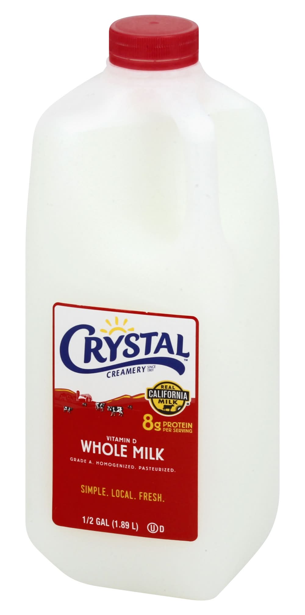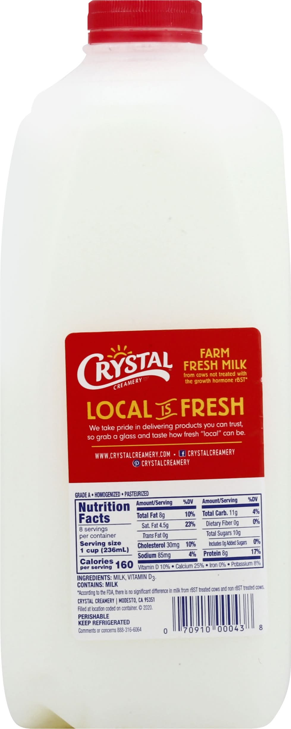 Milk, Whole, Vitamin D • Crystal Creamery, Modesto CA 95351 • Packaging: Reusable