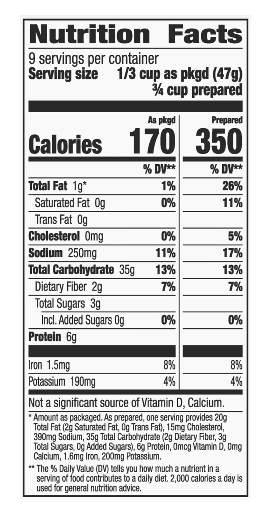 Pasta, Ranch & Bacon, Twin Pack • Number of servings: 9 • General Mills Sales, Minneapolis, MN, 55440 • Packaging: Reusable