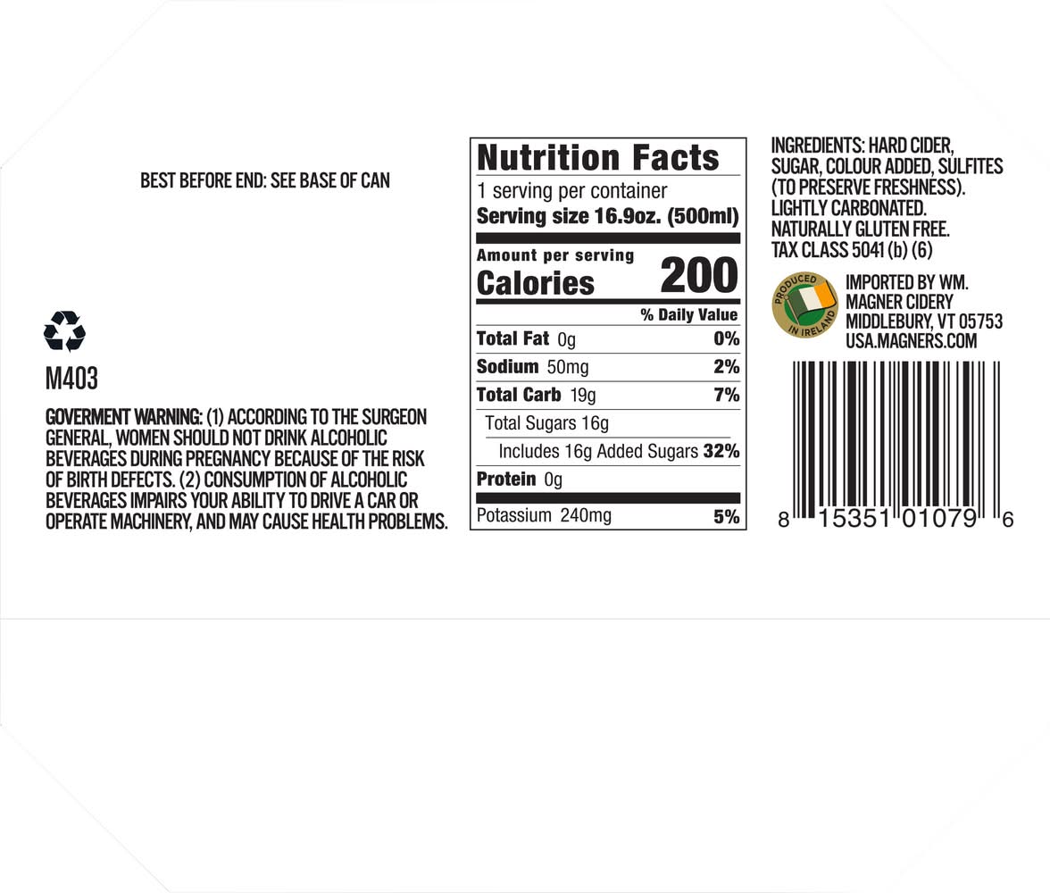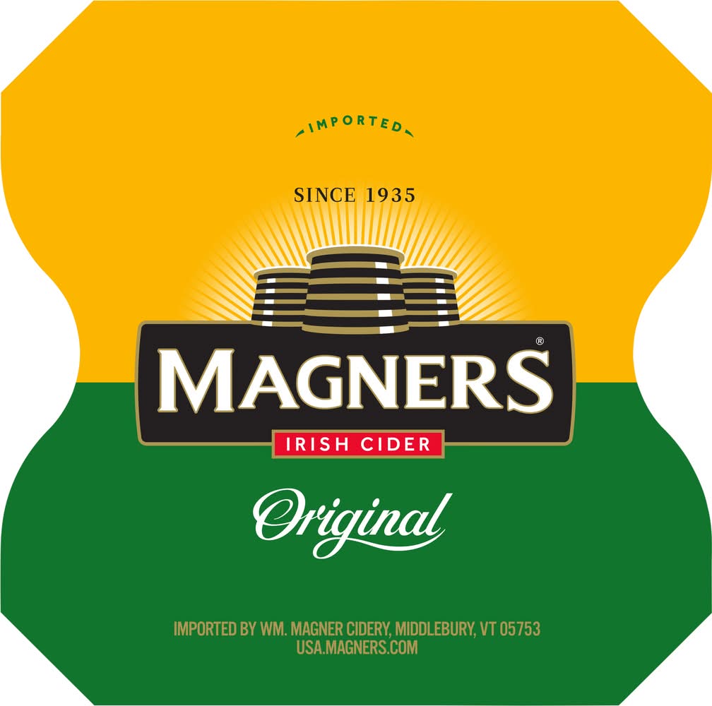 From the juice of 17 apple varieties. Naturally. Imported since 1935. Lightly carbonated. • Brand: Magners • Pack size: 4 • gluten-free • Alcohol by volume: 4.5% • Tasting notes: apple, sweet • Food pairing: pork, fruit - dried • Number of servings: 1