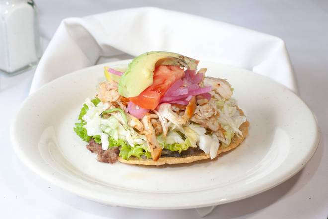 Fried corn tortilla filled with black beans, and choice of meat: chicken, or poc chuc or carnitas or asada or cochinita. *No custom orders and no substitution*.