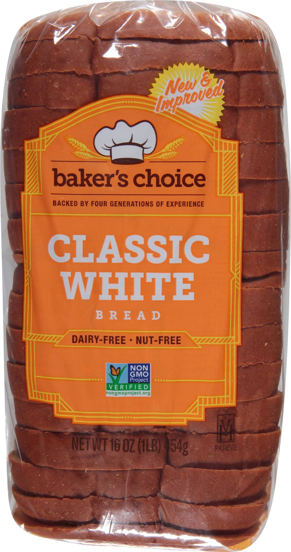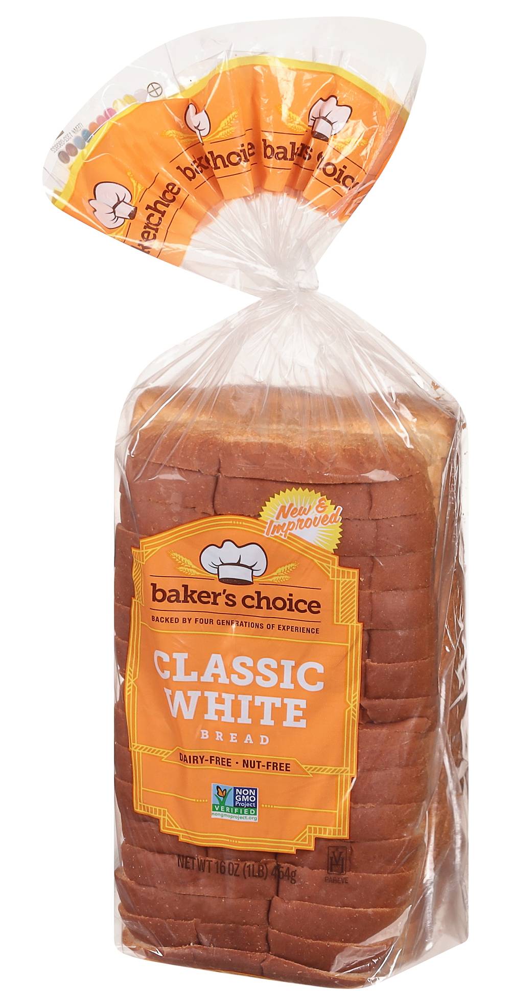 Dairy-free. Nut-free. Non-GMO Project verified. nongmoproject.org. New & improved. Backed by four generations of experience. Why do families choose Baker's Choice? Trust: Over 100 years of baking experience. Quality: We use only the highest quality ingredients. Taste: Perfect flavor and texture in every bite. From our family to your table. • Size: 16 oz • Number of servings: 16