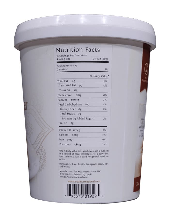 Ingredients: Rice, lentils, fenugreek seeds, salt, water