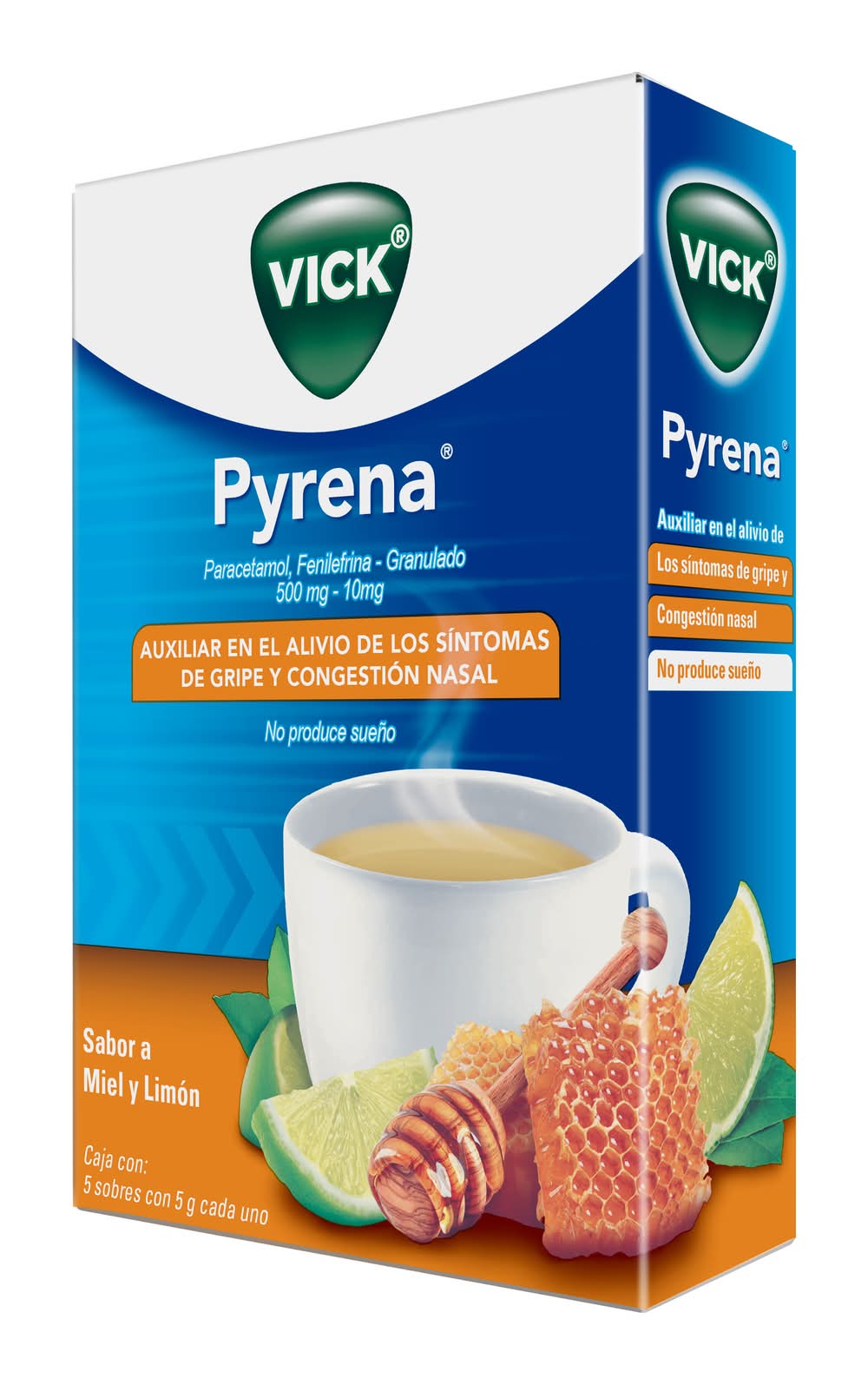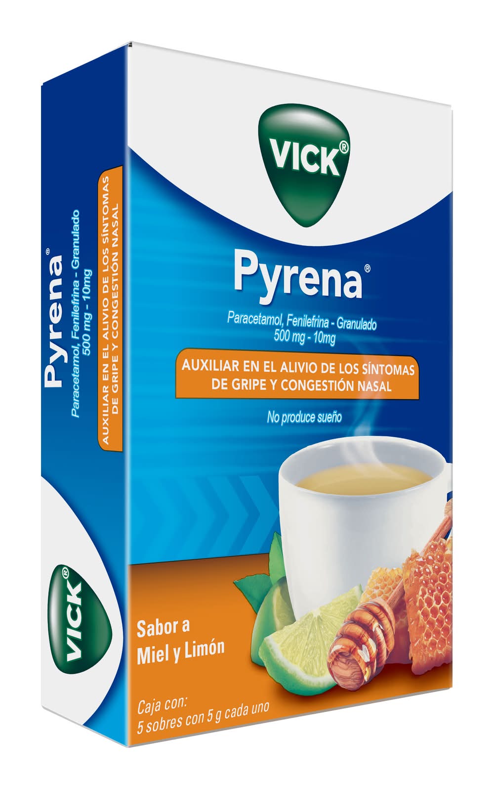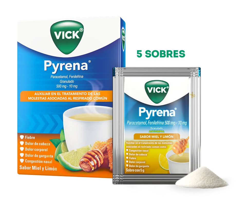 Vick · Pyrena paracetamol 500 mg/fenilefrina 10 mg granulado, miel-limón (5 x 5 g)