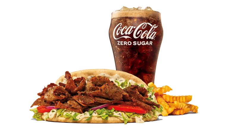 Authentic, carved Gyro meat and Greek seasonings in a warm pita with lettuce, tomato, red onions and cool and creamy tzatziki sauce. Visit arbys.com for nutritional and allergen information.