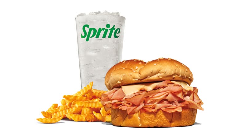 Thinly-sliced, smoked ham with melty Swiss cheese on a sesame bun. TM & © 2025 Arby’s IP Holder, LLC.
