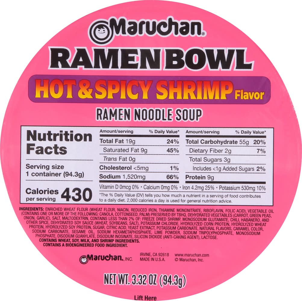 Ramen Bowl, Hot & Spicy Shrimp Flavor Maruchan, Inc., Irvine CA 92618