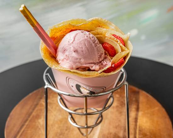 Cream cheese, strawberries, strawberry syrup, custard cream, strawberry gelato, & strawberry pocky.