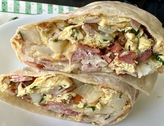 Flavorful breakfast wrap filled with scrambled eggs and more.