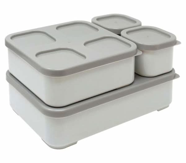 It's time to pack your lunch perfectly.Introducing our 4-Piece Lunch and Snack Box Set, proudly dressed in a cool shade of grey, made of plastic that keeps up with your on-the-go lifestyle. Perfect for school, work, or any adventure that comes your way. With this versatile lunch set, you can enjoy fresh meals and snacks anytime, anywhere. The built-in compartments make organizing your favorite bites a breeze, keeping everything neat and upright. Say goodbye to soggy sandwiches and hello to perfectly preserved flavors. Conveniently designed for easy transportation and storage. The set includes 4 containers with lids. Perfect for school, work, picnics, and more.Made of plastic, ideal for everyday use.The box measures 5.3in. L × 4.3in. W × 2.3in. H. Color: Grey