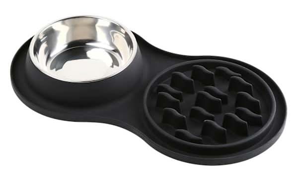 1.5-Cup Black Silicone Slow Pet Bowl Set, Medium