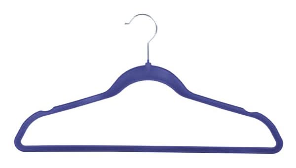 A stylish and practical solution to a cluttered closet. Fear not, fabulous fashionistas! We have the perfect solution to your crowded closets. This navy-blue velvet hanger pack of 50 features non-slip flocking-so no more clothes sliding off the hangers and onto the floor! And the ultra-slim design means more space in your closet, too!One pack includers 50 hangers. Features a soothing navy-blue finish. Includes a non-slip texture. Crafted from velvet. Color: Navy blue