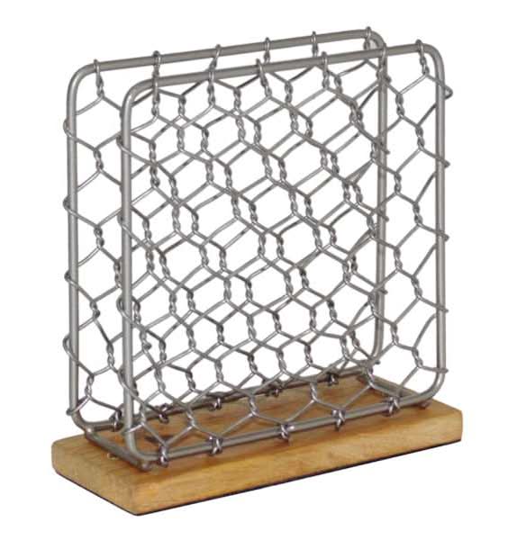 Iron Chicken Wire Napkin Holder with Mango Wood Base