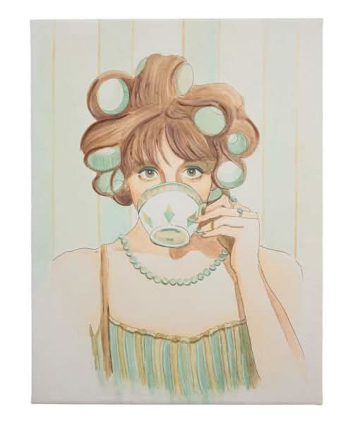 Show off your inner art collector with this exclusive wall decor collection - featuring vintage-inspired prints to eclectic paintings - supporting students at this globally recognized and immersive design program. Kassidy Keenehan is from Geneva, Illinois, and is pursuing a BFA in Painting. She is expected to graduate from the Savannah College of Art and Design in 2025. Her favorite medium is oil paint, and her primary focus is portraiture and figuration. Add a little artistic character to your home with our 12x16in. SCAD Sunday Morning Canvas Wall Art. The possibilities are endless with this multicolor woman, curlers and coffee wall art. Wonderful color creates visual interest against an interesting striped backdrop. Hang one to make a bold statement and to add a touch of charm to any room in your home.