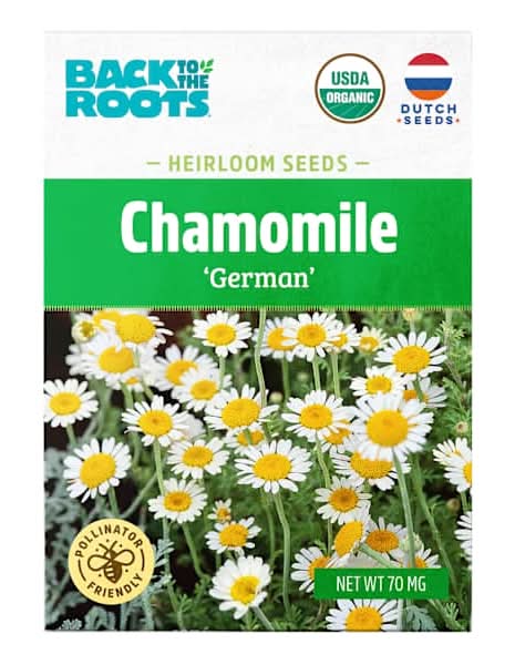 Elevate your floral and beverage creations with Back to the Roots German Chamomile Seeds. USDA certified organic and non-GMO, these Dutch seeds ensure pure, untainted flavors for your warm-weather flower/herb garden.Includes chamomile seeds.USDA certified organic. non-GMO.