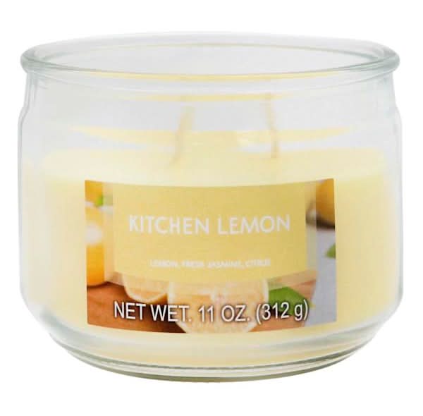 Inspire your kitchen and delight your sensesBring a burst of refreshing fragrance to your kitchen with this beautifully scented jar candle. Transform your cooking space into a vibrant and inviting environment with its invigorating lemon aroma, creating a stimulating atmosphere that encourages creativity. Not only does this jar candle fill your kitchen with delightful fragrances, but it also adds a touch of style and ambiance. Open the lid and the soft flame will dance behind the glass, casting a warm and cozy glow, perfect for those laid-back evenings spent cooking and entertaining. Invigorating lemon scent to brighten your kitchen.Creates a cozy and welcoming atmosphere.Perfect for enhancing your culinary adventures.Features a glass jar and lid for a stylish touch.Measures 4.1in. L × 4.1in. W × 3.2in. H. Size: 11oz