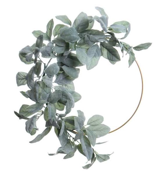 Bring nature indoors. Add a touch of nature to your home with this lifelike Lambs Ear on a Metal Ring. Crafted from plastic, this lambs ear plant effortlessly brings the beauty of the outdoors to any space. With its realistic greenery and charming metal ring, this Lambs Ear on a Metal Ring is the perfect decorative accent for your living room, bedroom, or even your office. Its faux plant design requires no maintenance, allowing you to enjoy its natural beauty without the hassle of watering. Realistic lambs ear plant. Charming metal ring for a touch of style.Made from plastic. Measures 18" L x 14" H x 5" W.