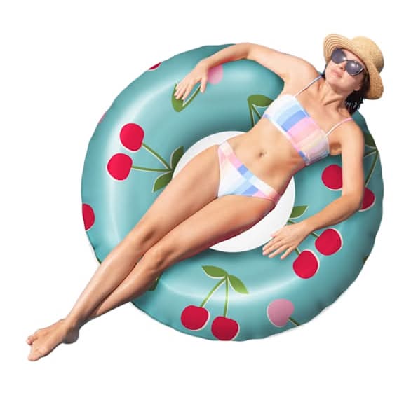 Bright and lively looks for less from designer Joy Cho. Shop At Home for the new and exclusive, limited time collection now. The inflatable Oh Joy! Summer Fun Cherry Pool Ring will make a big splash for summer-filled fun. The blue, red and green cherry design makes the floating ring the perfect summer accessory, guaranteed to liven up any indoor or outdoor pool party. Whether you are swimming or just chilling, keep your options open with your favorite floatie right by your side.