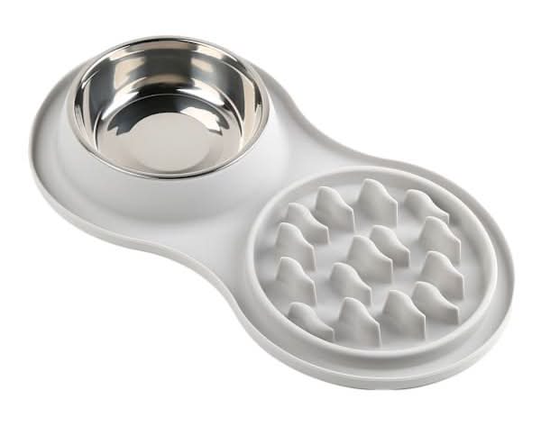 A smarter way to savor every mealtime. Make mealtime enjoyable and engaging with the Grey Silicone Slow Bowl Set. Crafted to encourage slower eating, this innovative set helps prevent indigestion and promotes a healthier digestion process for your feline friend. Constructed with high-quality silicone, this slow bowl set is easy to clean and convenient to use. The non-slip base keeps the bowl in place, ensuring a mess-free dining experience for your beloved pet. Encourages slower eating for better digestion. Non-slip base for a mess-free mealtime.Easy to clean and maintain. Constructed of grey silicone and metal. Box measures 10.1” L × 4.9” W × 1.7” H. Color: Grey