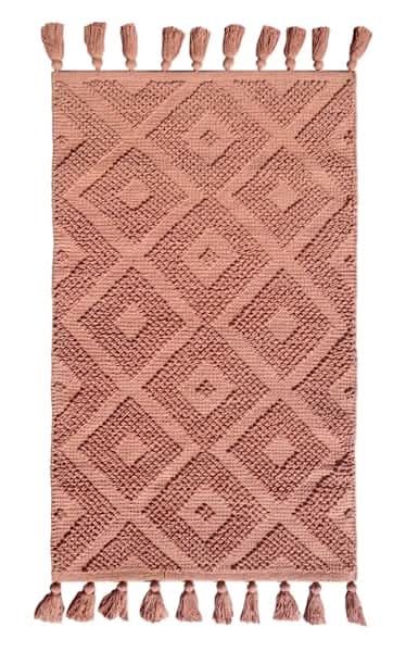 Looks and artistry aside, area rugs help absorb and muffle noise as they soften the step of hard flooring. Our 27x45in. Muted Clay Handwoven Hi-Lo Diamond Accent Rug is constructed of comfy cotton and designed to stand up to any and all traffic and wear. With a high/low texture, this tasseled rug offers a cozy and inviting feel to your rooms with the added benefit of being easy to care for.