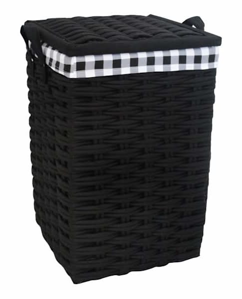 A stylish and functional solution for keeping your laundry organized and out of sight, this Buffalo Check Laundry Hamper adds a touch of charm to any space. Its sleek black color complements any interior decor, while the printed buffalo check liner adds a fun and trendy twist.Printed buffalo check liner adds a fashionable pop of pattern. Equipped with integrated handles for easy transportation. Made of fabric. Measures 15.5" L x 23.2" H x 15.5" W. Size: Large