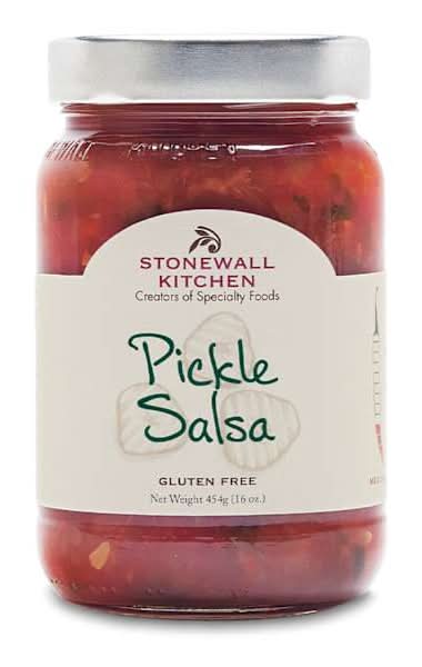 Vibrant and flavorful, this tangy concoction offers a unique taste. Crafted with a touch of zing and a hint of zesty goodness, this inventive fusion pairs the sassiness of pickles with the savoriness of salsa, creating an unforgettable flavor explosion for your taste buds. Whether adding a kick to your favorite dishes or enjoying as a standalone dip, this delightful Stonewall Kitchen Pickle Salsa brings a playful twist to any mealtime adventure, leaving you craving more with every bite. Delightful blend of tangy pickles and zesty salsa. Offers a unique and mouthwatering flavor experience. Perfect for enhancing your favorite dishes or as a zesty dip. Complements a variety of culinary creations. Measures 5in. L × 8.5in. W × 2in. H.