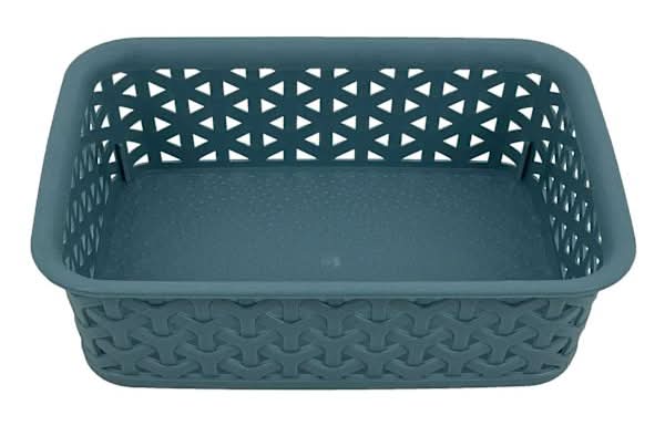 Store your clutter away in style. Add a touch of flair to your home organization with the Blue Y-Weave Extra-Small Storage Basket. This eye-catching basket is the perfect blend of functionality and fashion, providing a trendy storage solution for any room in your home. The Y-Weave design adds a unique texture to the basket, making it a standout piece that you'll be proud to display. With its extra small size, it's ideal for storing and organizing small household items like keys, jewelry, and craft supplies. Its convenient shape allows it to fit seamlessly on shelves, countertops, or even tucked away in a drawer. Y-Weave design brings a stylish touch to any room. Extra small size is perfect for small items like keys and jewelry. Provides a trendy storage solution for organizing your home. Compact design fits effortlessly on shelves, countertops, and in drawers. Measures 2.5in. L × 5in. W × 8in. H.