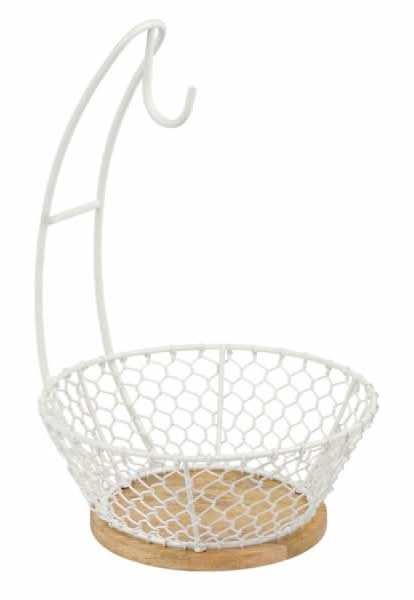 White Iron Chicken Wire Weave & Mango Wood Banana Holder & Fruit Basket