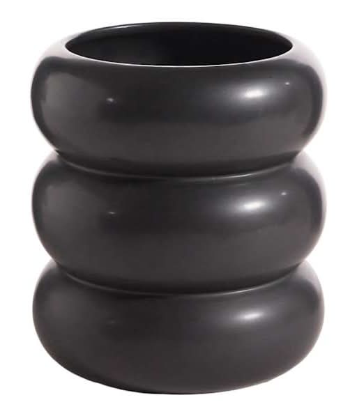 Modern design and unbeatable prices come together at Crosby St. only from At Home. Highlight your green thumb and showcase your annuals and perennials at your front door or lend a pop of festive foliage to the deck with our 6in. Crosby St. Indoor Black Modern Rib Planter. More than just a spot to display your gardening skills, this wonderful thick layered ribbed black ceramic pot offers a convenient display with its interesting shape. Designed to live indoors or in a covered outdoor space, it's ready and waiting to make your plants pop. Color: Black