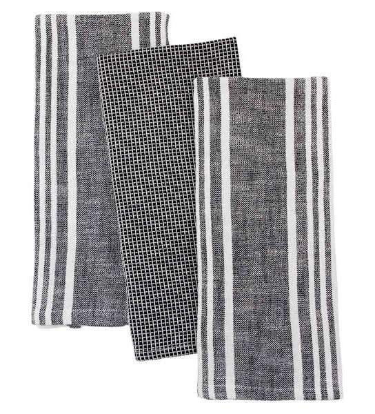 Set of 3 Black Porter Slub Waffle Cotton Kitchen Towels